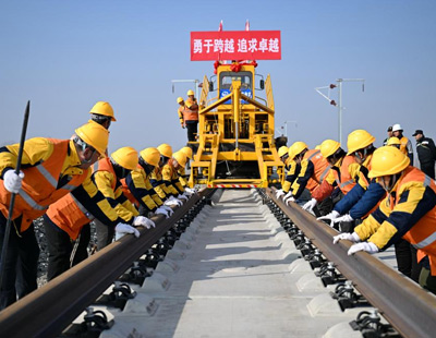9月13日,火炬手张海斌(左)和贺云飞在火炬传递中。