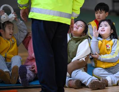 6月2日,来自沧州南皮县的少年在表演沧州落子。