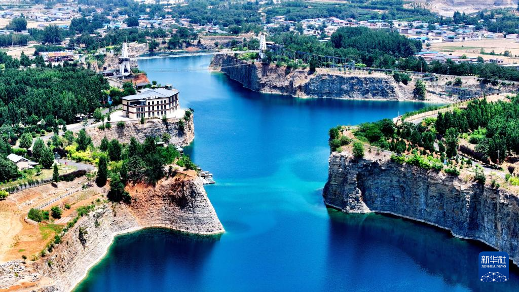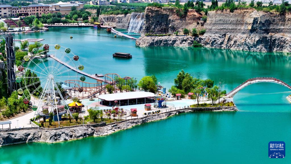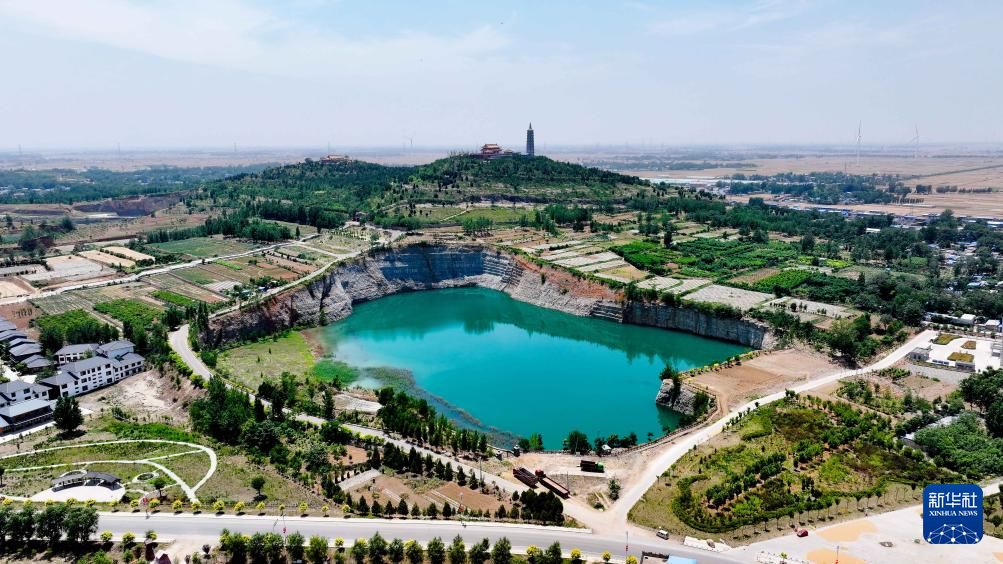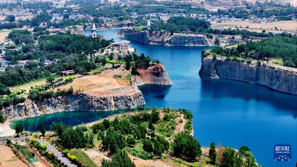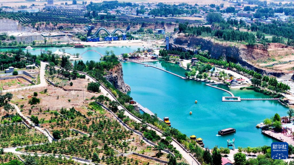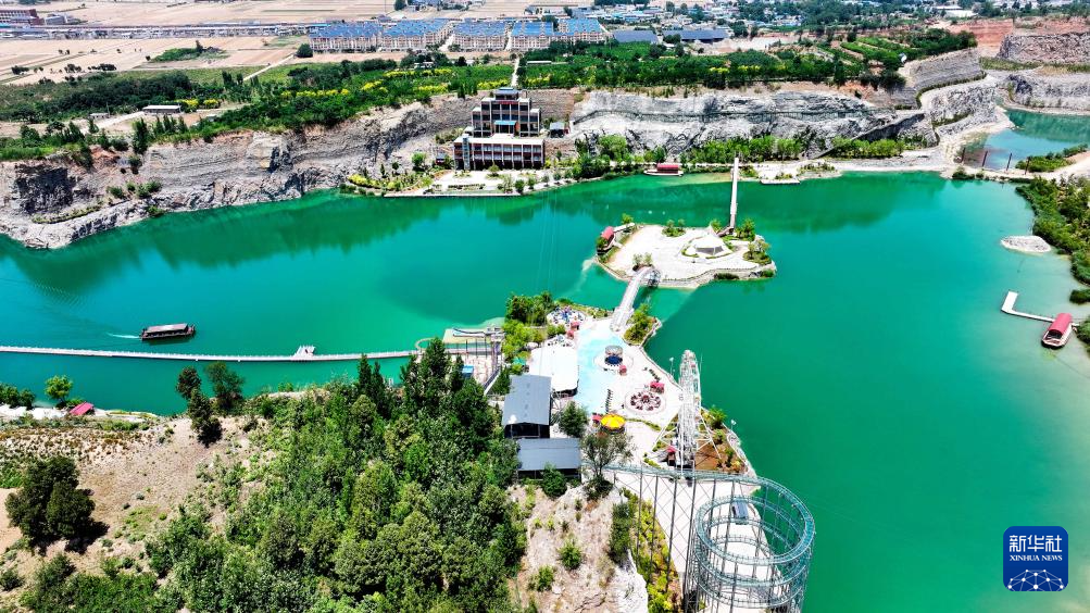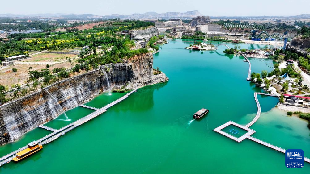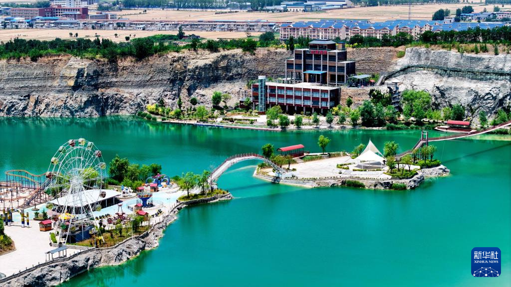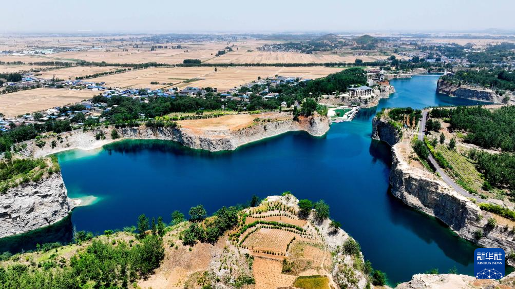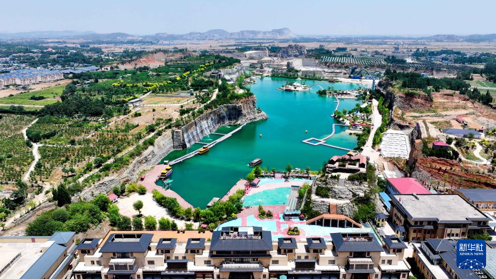 这是6月4日拍摄的菏泽市巨野县核桃园镇青龙山旅游度假区。该度假区是当地对关停矿山、废弃矿坑进行综合治理和生态修复后打造而成的(无人机照片)。