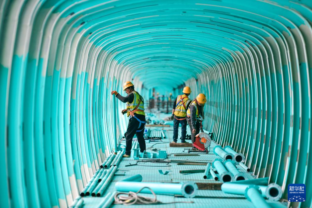 6月11日,建设者在贵州花江峡谷大桥上安装观景长廊。