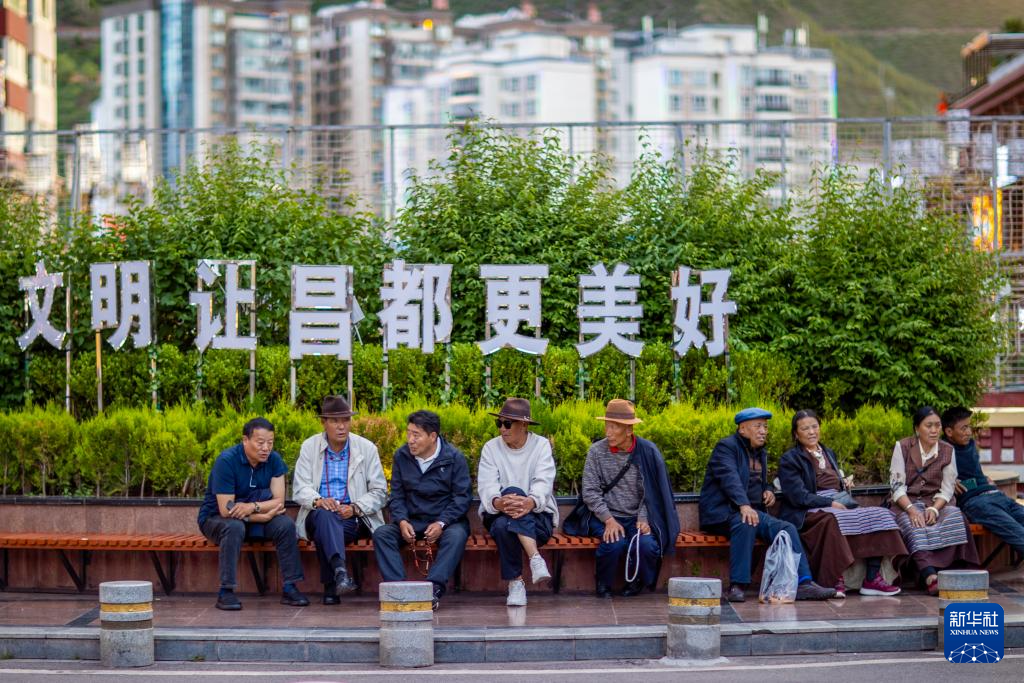 市民在昌都市茶马广场休闲(6月21日摄)。