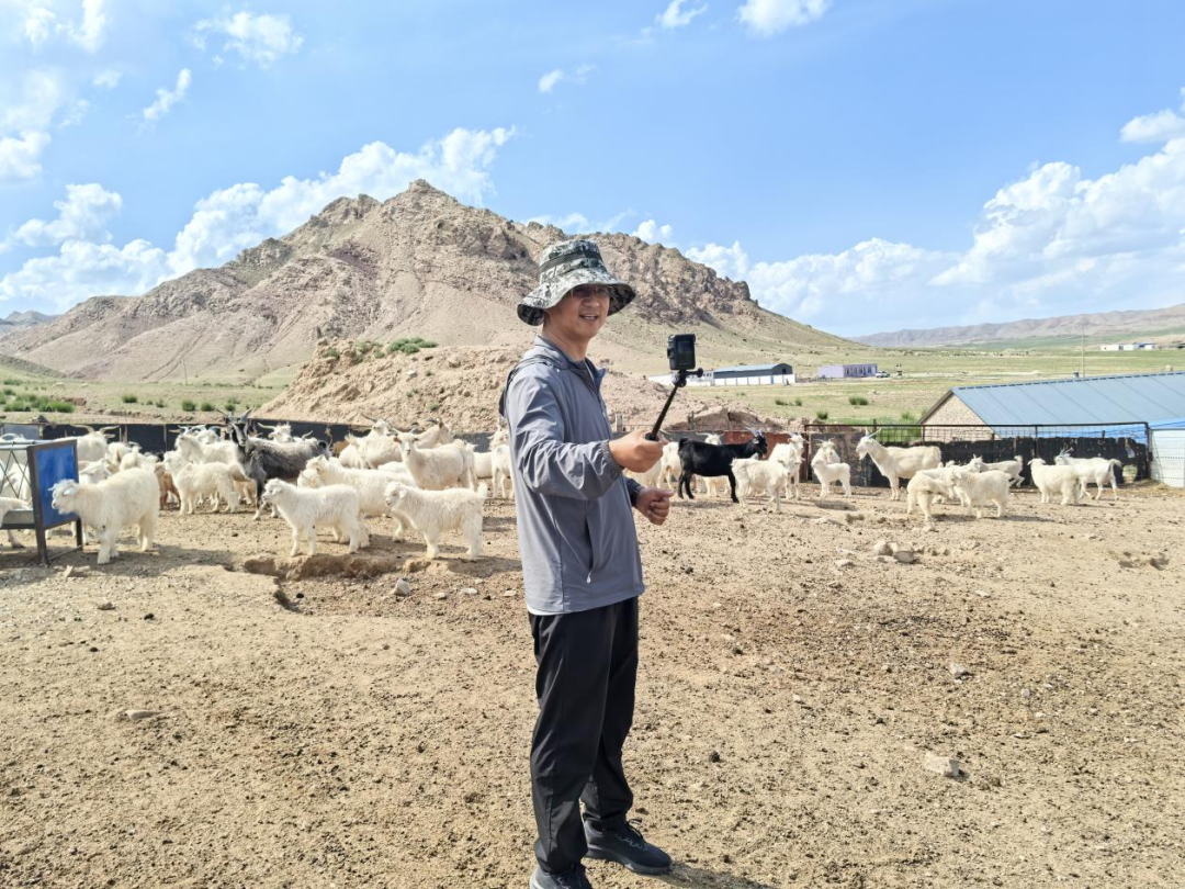 “他们家的羊都快被我卖完了!”棋盘井镇乌仁都西嘎查牧民朝格图家的羊圈里,驻村干部王贤权正举着稳定器在直播着,他用三年时间把新媒体变成了"新农具"。