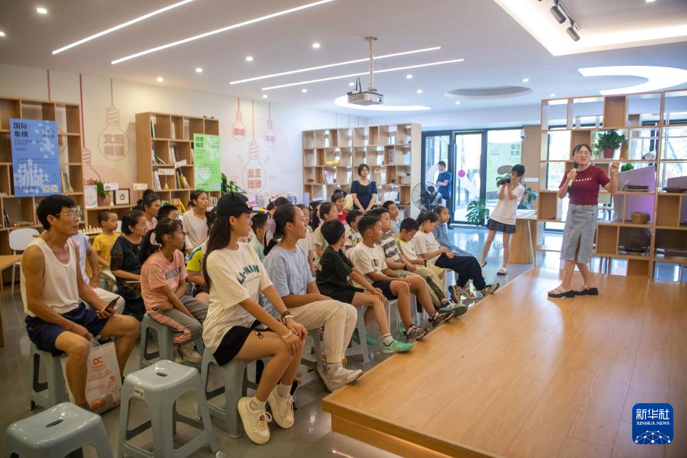 7月31日,小朋友在重庆市两江新区大竹林街道竹林社区学院举办的文化艺术游园会活动上学习国际象棋。