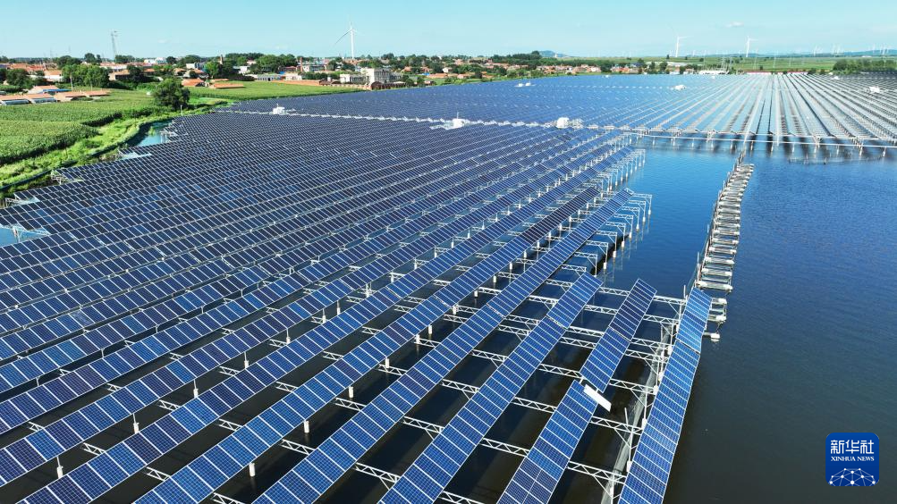 7月30日在铁岭县大青水库拍摄的光伏发电板(无人机照片)。