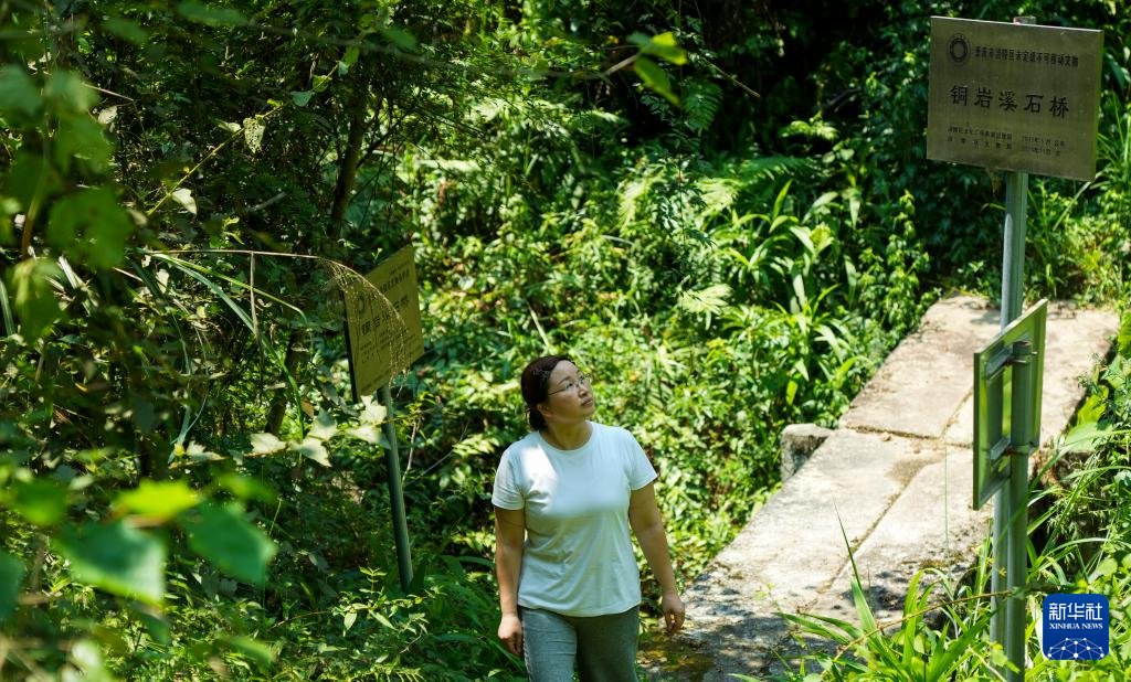 7月30日,重庆市涪陵区百胜镇工作人员周宗云对古道上的一座桥梁进行巡查。