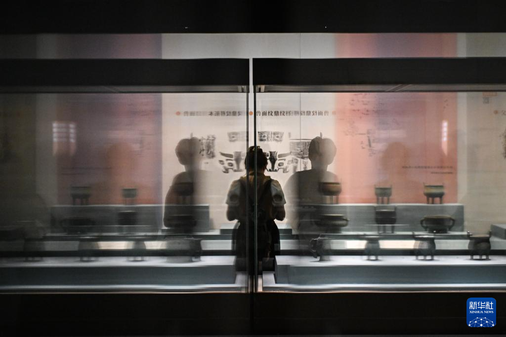 琉璃河遗址出土文物克盉(左)、克罍在展览中同时展出(8月28日摄)。