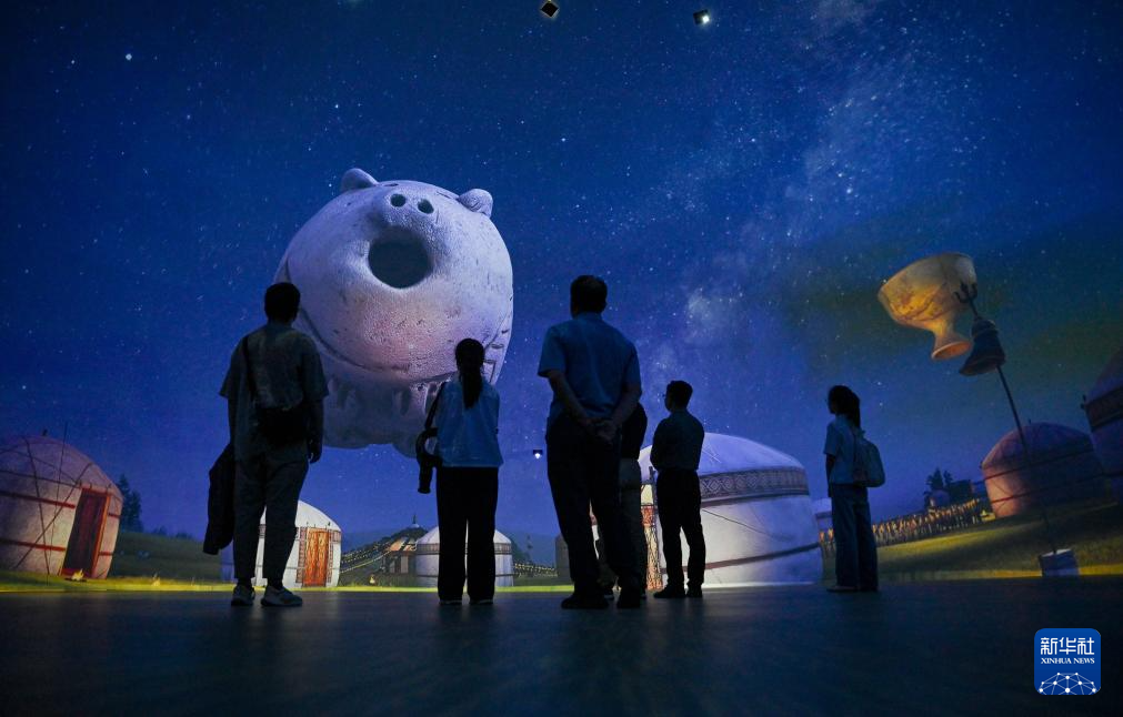 8月10日,游客在通辽市扎鲁特旗南宝力皋吐遗址博物馆参观。
