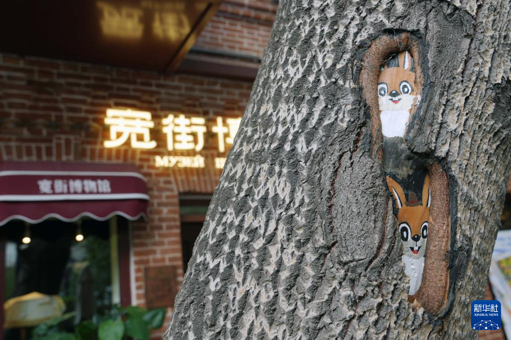哈尔滨宽街博物馆门前的装饰画(9月3日摄)。