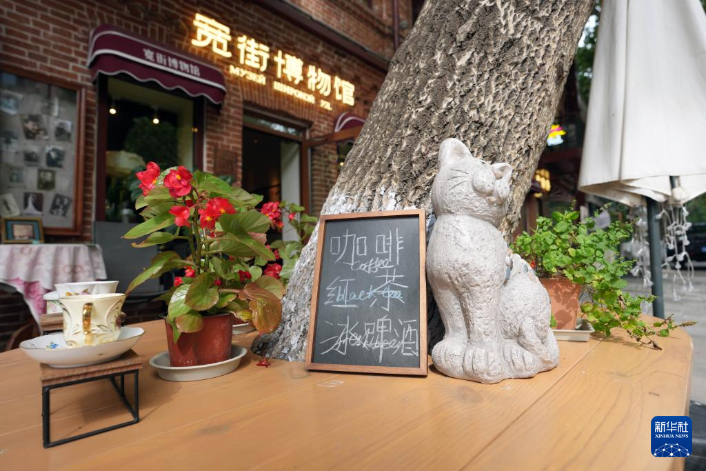 人们在位于哈尔滨市西十三道街的宽街博物馆后院拍照(9月3日摄)。