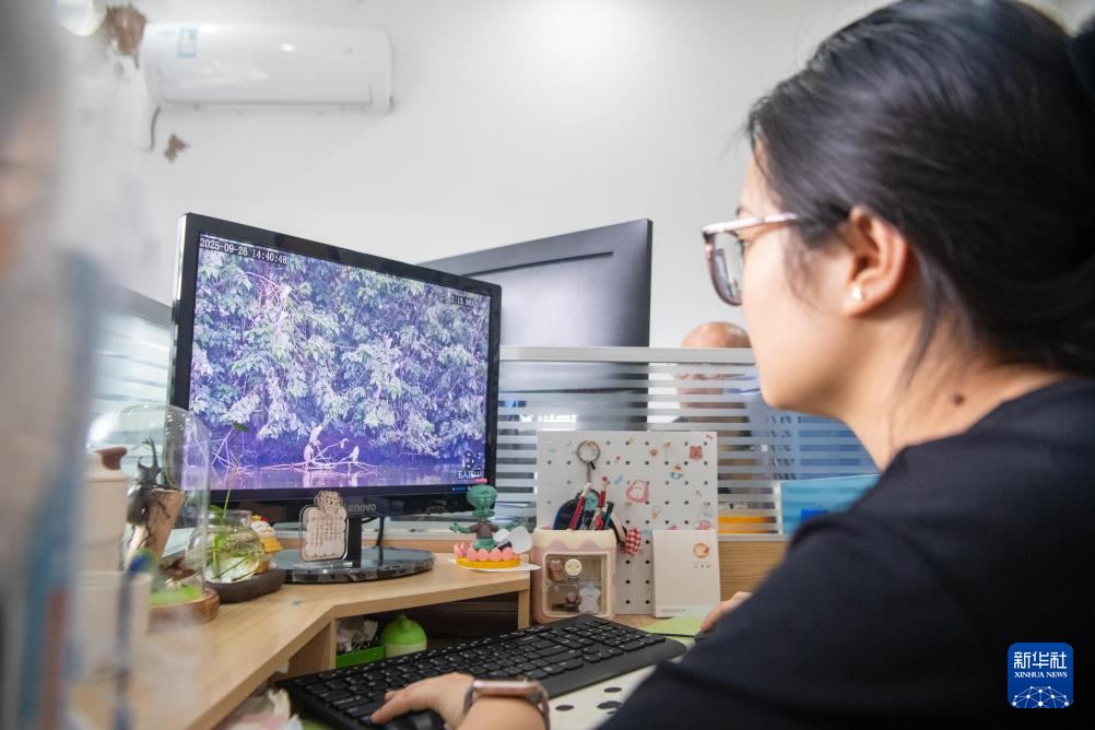 9月26日,重庆市梁平区湿地保护中心工作人员吕妮洪在保护中心内对采集数据进行整理。