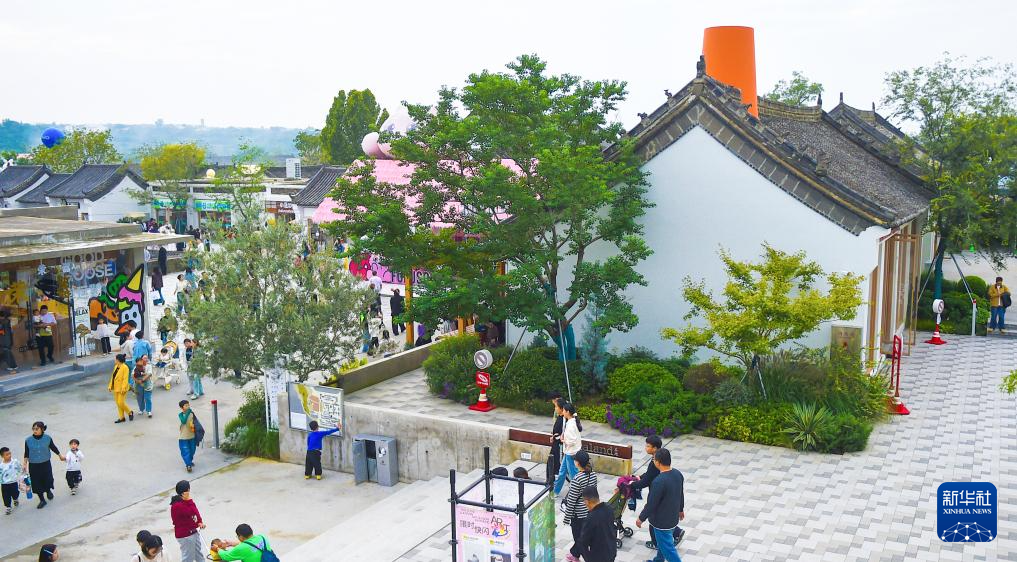 10月7日,游客在河南省洛阳市孟津区朝阳镇卫坡村的魏坡新序项目休闲游玩。
