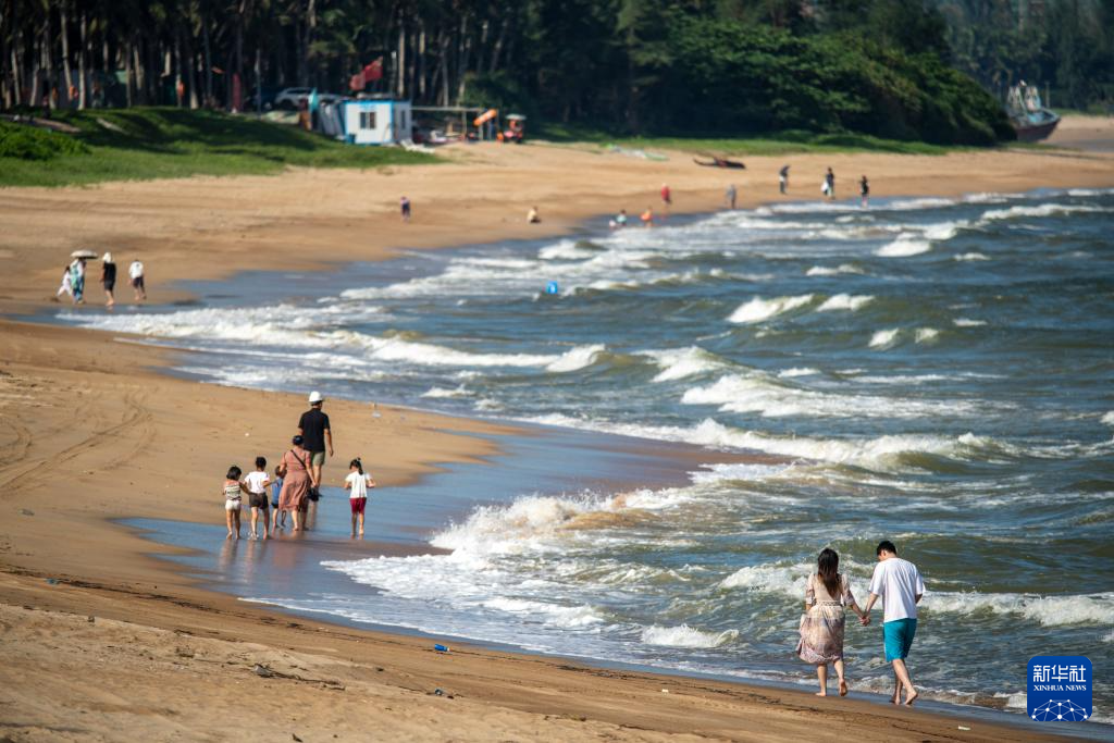 10月8日,游客在海南省琼海市博鳌海滨游玩。