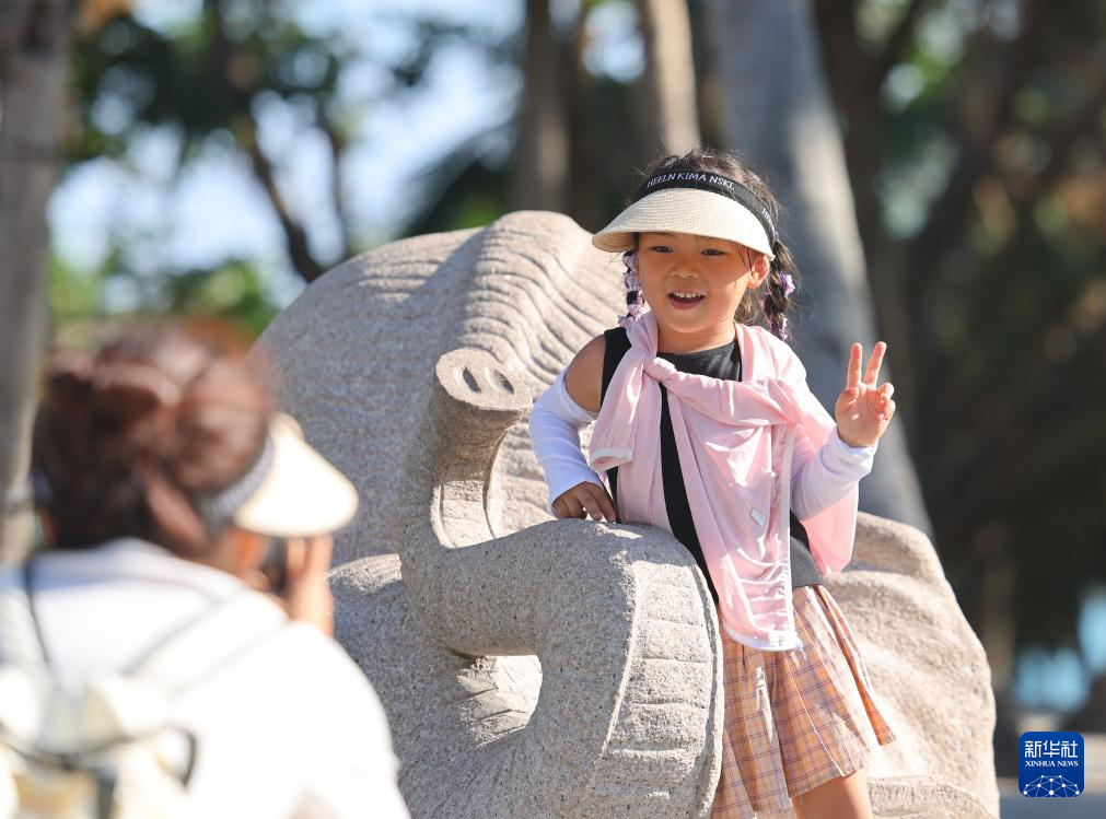 10月8日,家长带着孩子在海南三亚南山文化旅游区游玩。
