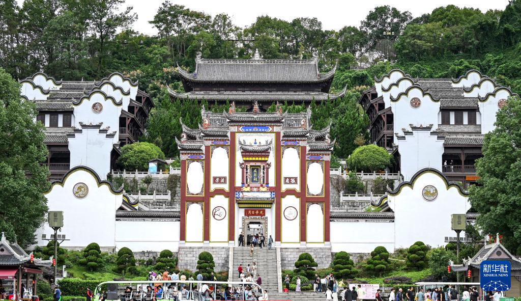 10月3日,人们在湖北省宜昌市秭归县屈原祠参观。