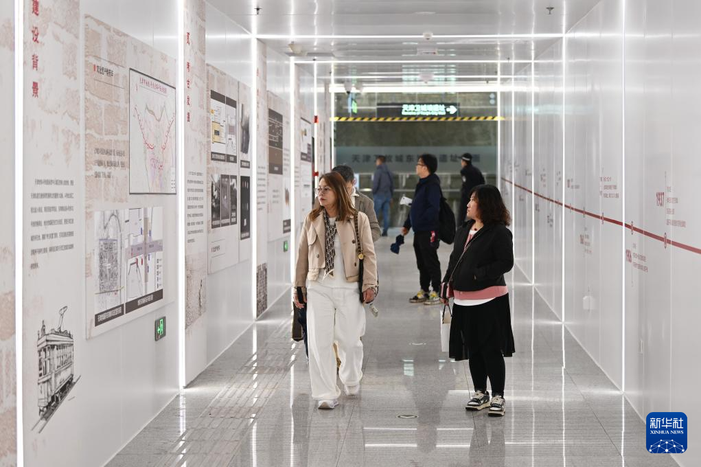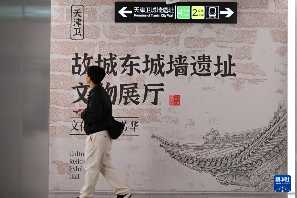 近日,位于天津地铁4号线东南角站的天津卫故城东城墙遗址文物展厅正式开放,展厅内21米长的城墙遗址层次分明,让乘客在出行时也能了解天津历史。