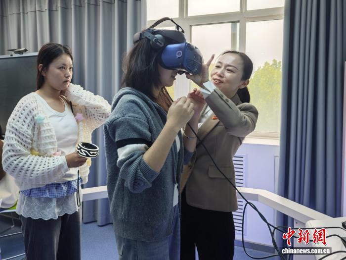 图为“婴幼儿发展与健康管理”专业学生体验VR教学设备。党田野摄