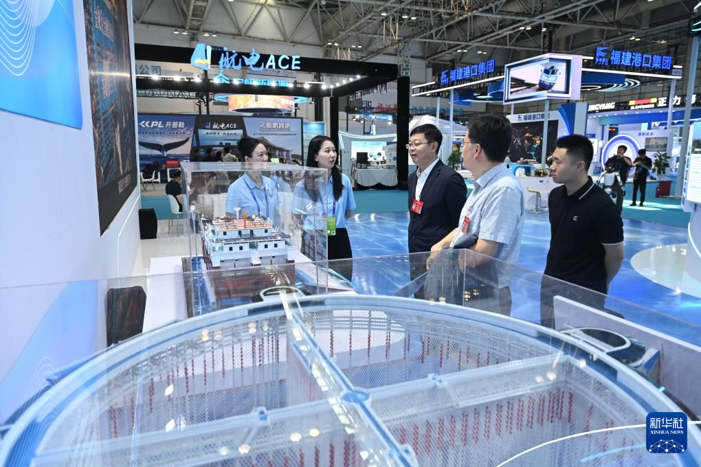 10月16日,与会人员在福建海洋装备产业链馆海上风电装备展区参观。