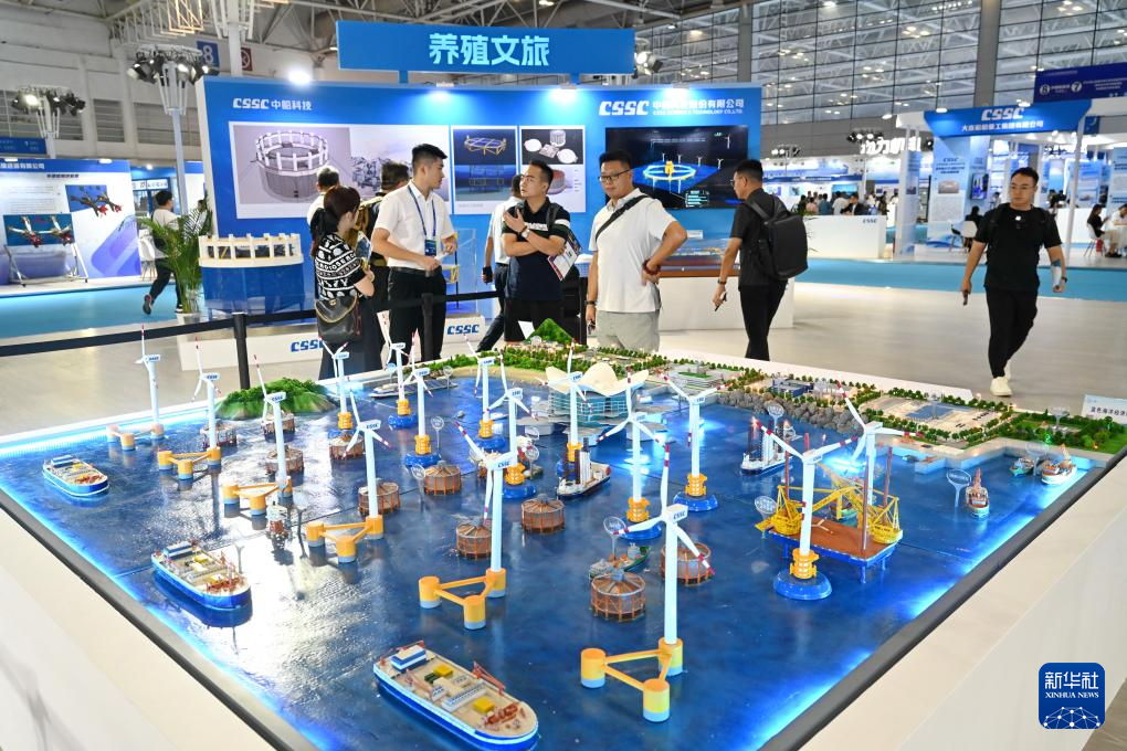 10月16日,与会人员在中国海洋装备博览会现场的蓝色海洋经济综合体沙盘前参观。