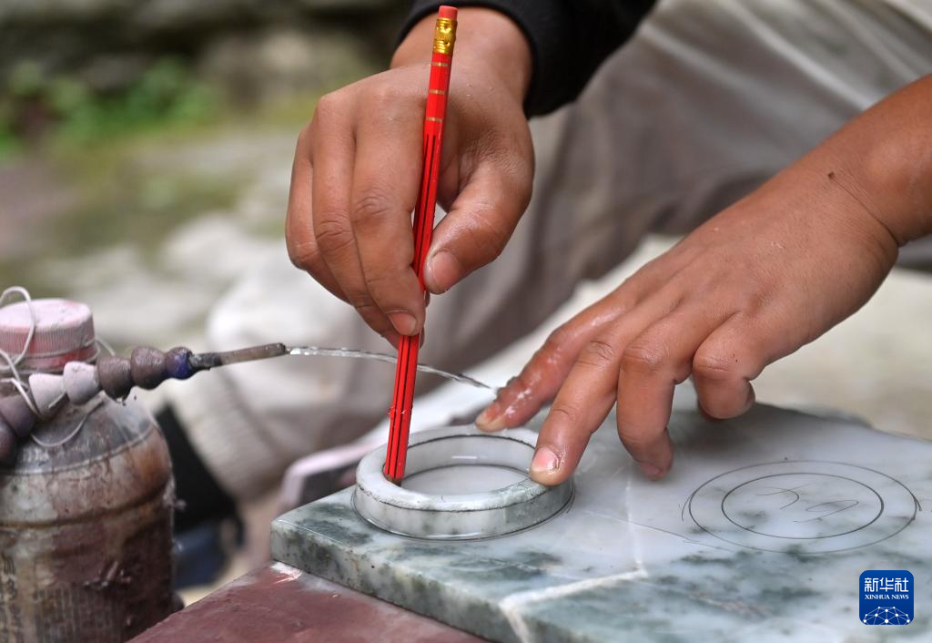 广西龙胜各族自治县是鸡血玉的重要产地,该县三门镇拥有近50家玉器加工家庭作坊,帮助当地群众实现家门口就业。