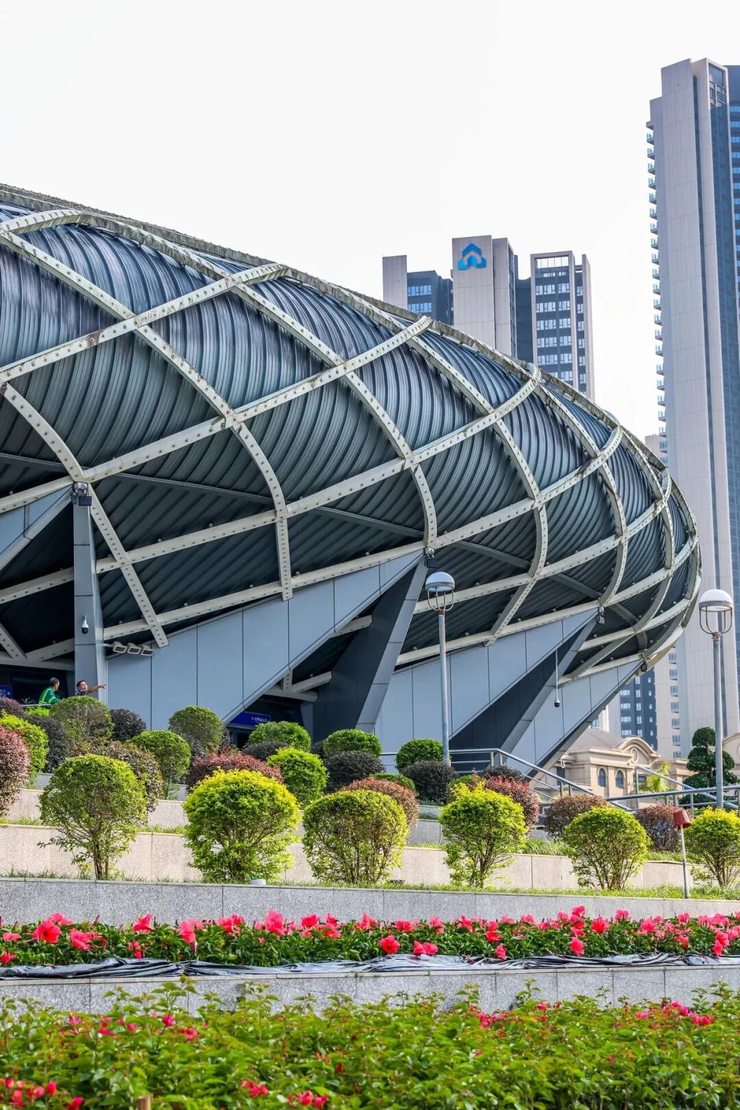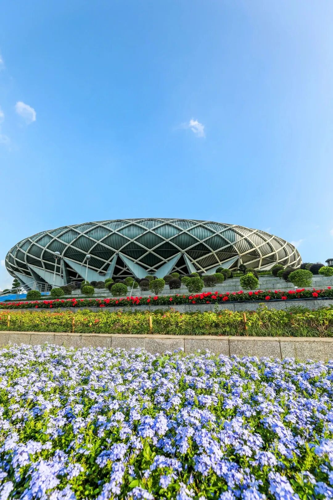 馆外鲜花绚烂绽放