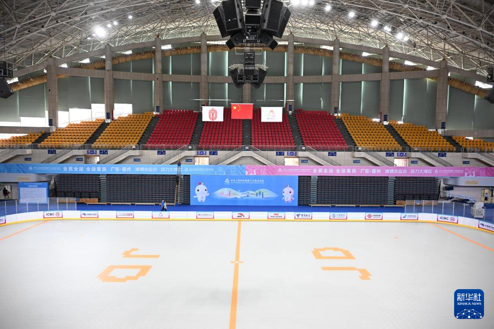 广东惠州体育馆内景(10月10日摄)。全运会跆拳道比赛及群众比赛轮滑项目在这里举行。