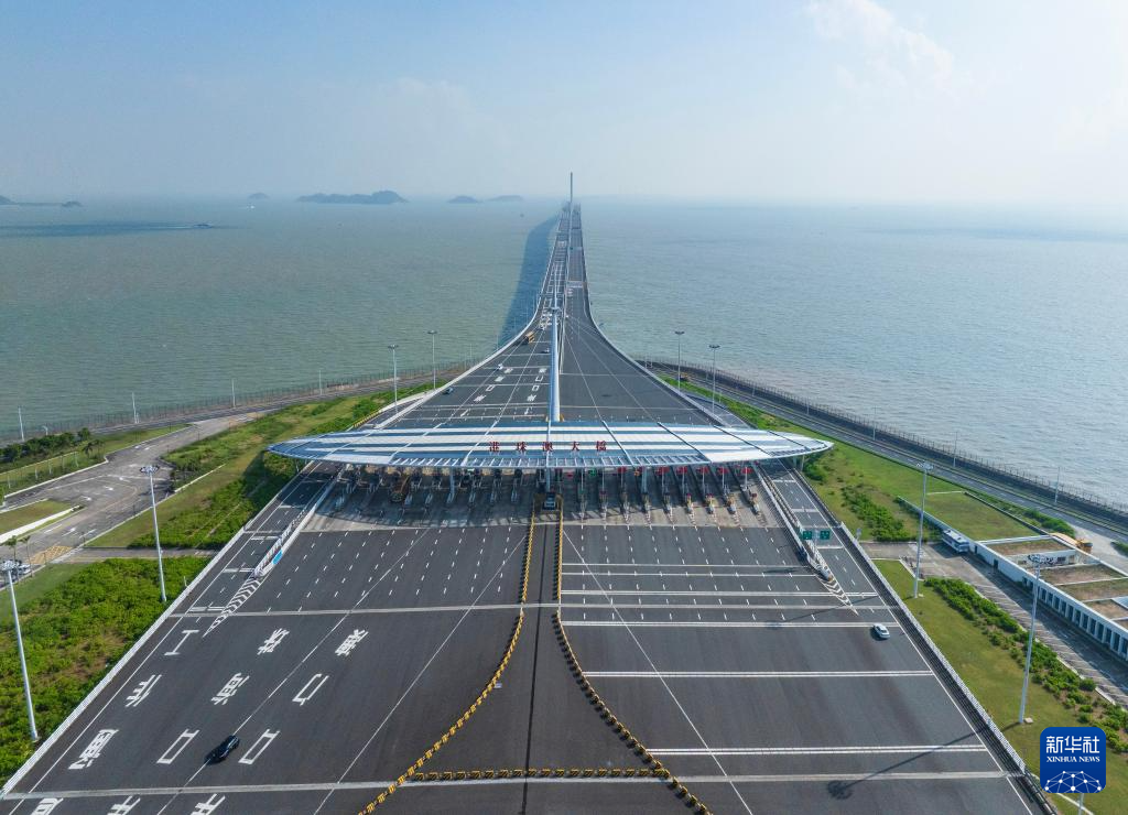 港珠澳大桥(10月19日摄,无人机照片)。港珠澳大桥是全运会公路自行车项目途经地,一桥串联粤港澳三地。