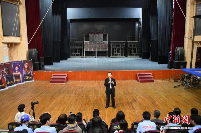 图为《花瓦俍兵》制作指导李恩杰介绍剧目的创作情况。林浩摄