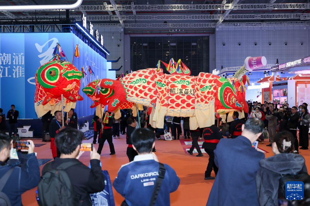 11月20日在安徽展区拍摄的瞻淇鱼灯表演。