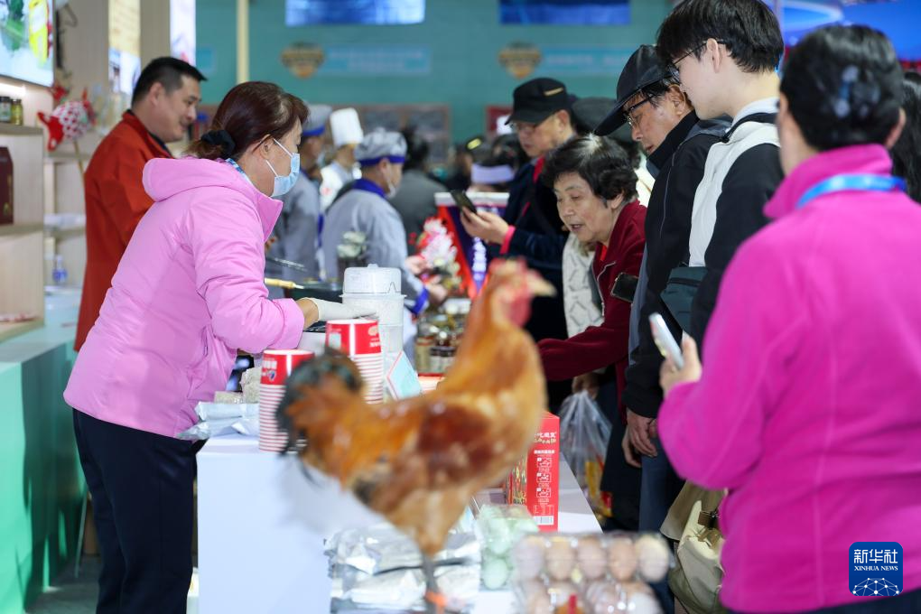 11月20日,观众在安徽展区体验美食。