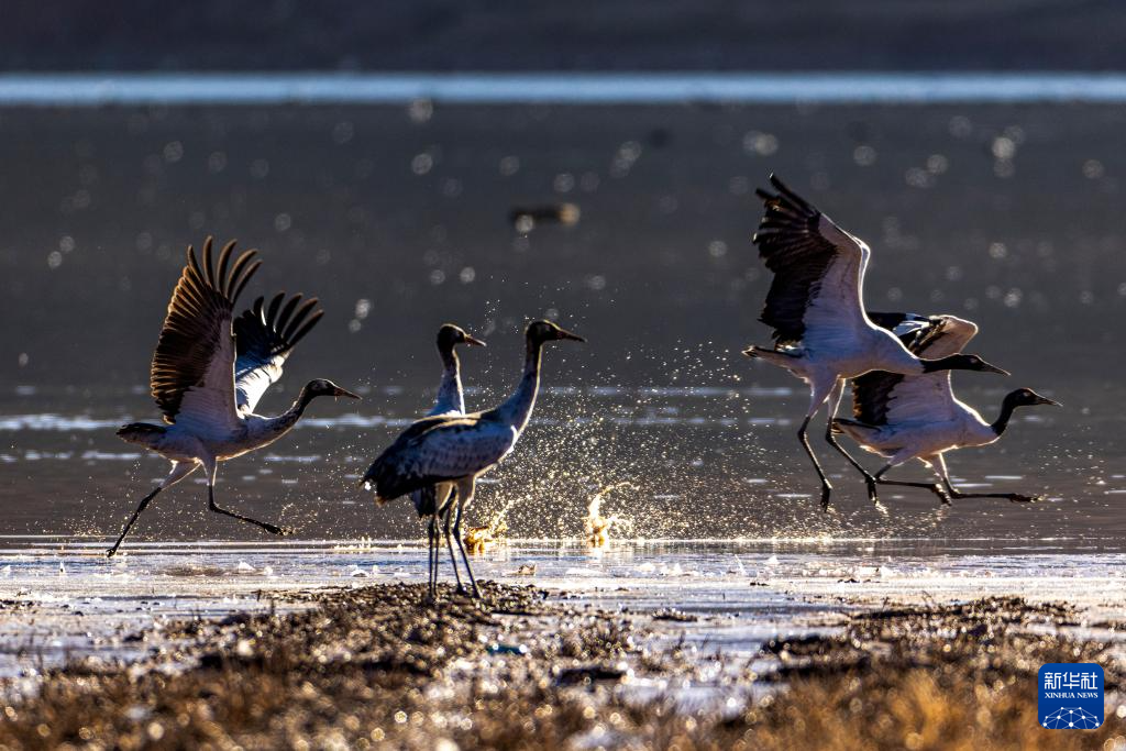 冬日时节,拉萨市林周县迎来大批越冬候鸟,黑颈鹤、斑头雁、赤麻鸭等候鸟在河谷、湖泊等地觅食、休憩。