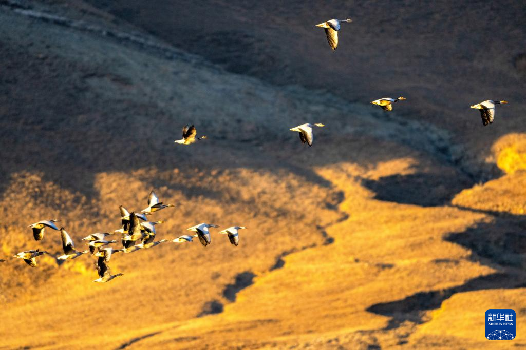 这是11月23日在西藏拉萨市林周县拍摄的越冬候鸟。
