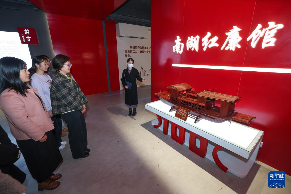 12月11日,在浙江省嘉兴市南湖区红廉馆内,东栅街道文贤社区党员干部开展廉政教育主题党日活动。