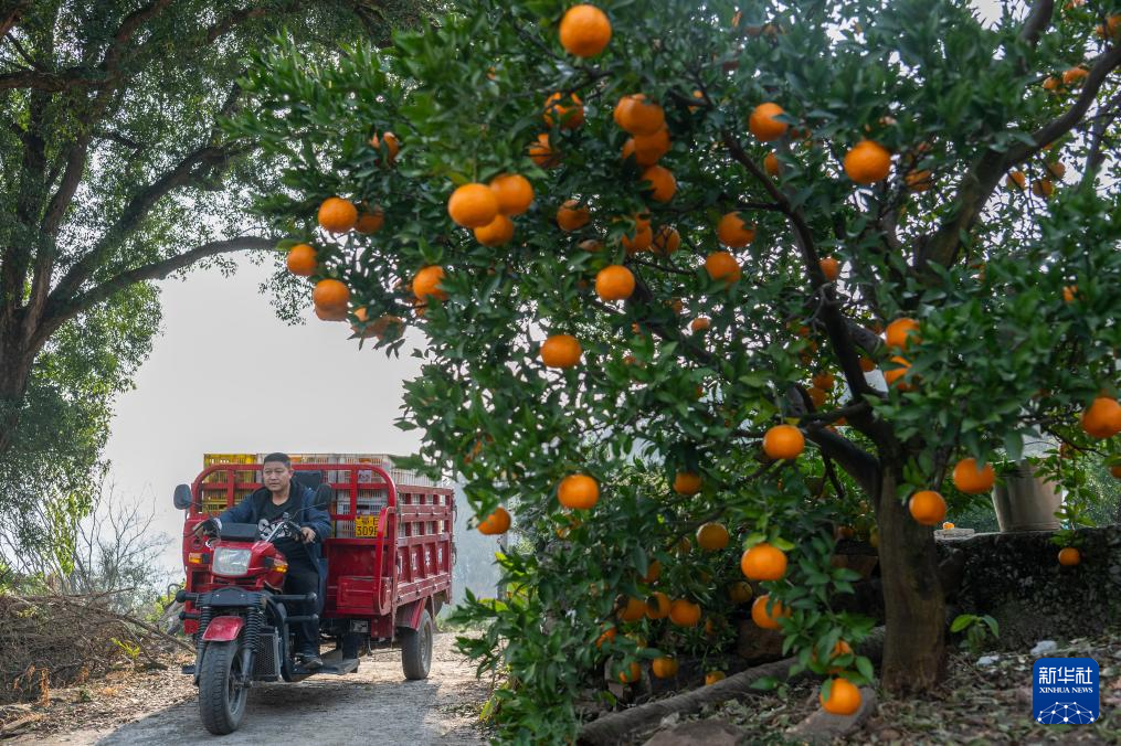 12月11日,在湖北省宜昌市长阳土家族自治县渔峡口镇岩松坪村,村民在转运刚采摘的清江椪柑。