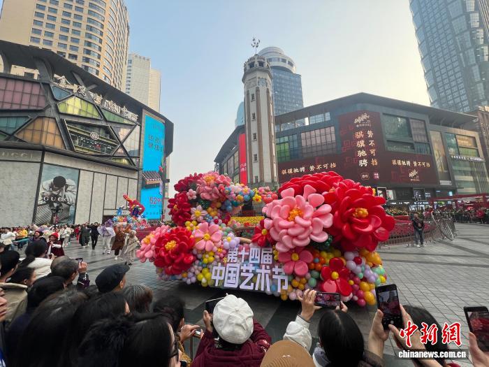 图为“山城荟、艺起来”解放碑艺术巡游现场。中新网记者 钟旖摄