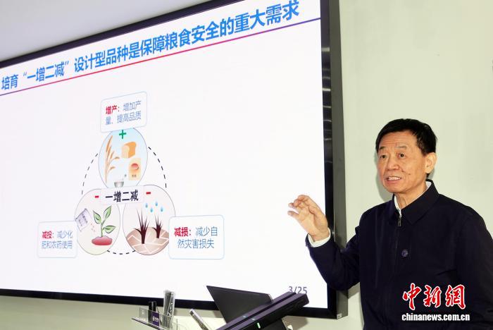 李家洋院士介绍种子专项整体实施情况,解读“一增二减”设计目标。中新网记者 孙自法 摄