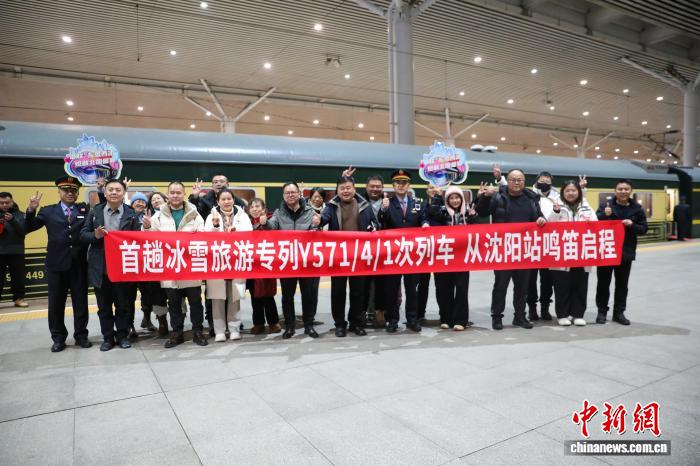 中新网沈阳12月24日电 (记者于海洋)中国铁路沈阳局集团有限公司(以下简称国铁沈阳局)今冬首趟冰雪旅游专列Y571/4/1次列车,23日19时49分从沈阳站鸣笛启程,满载游客奔赴吉林冰雪秘境。这趟专列将查干湖的壮美金冰与长白山的纯净粉雪无缝串联,以“沈铁假日号”升级车体为载体,开启8天7晚北国冰雪文旅新体验。