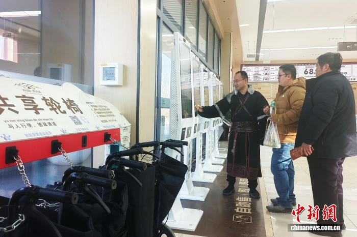 1月12日,银川西夏陵景区内,工作人员协助游客进行线上购票,景区各处还设有共享轮椅取放点,方便老年游客出行。赵惠 摄