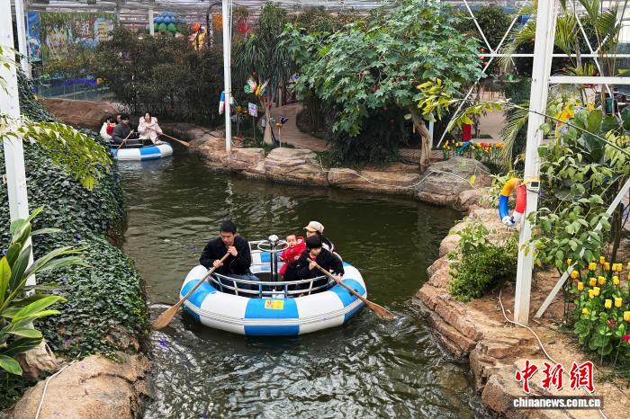 2025年12月20日,宁夏农旅产业园内,不少游客正泛舟漂流,尽享休闲时光。(资料图)中新网记者 李佩珊 摄