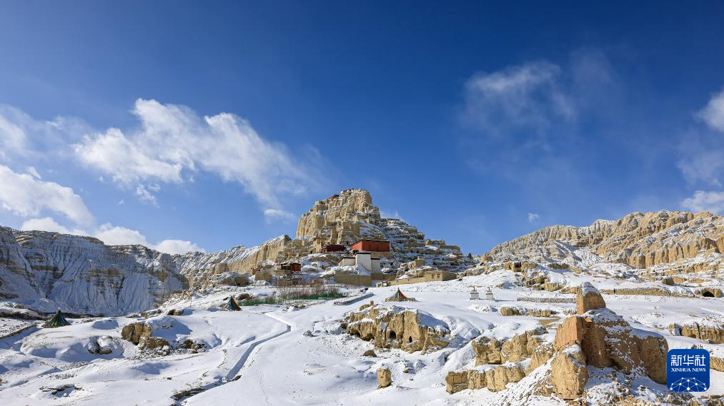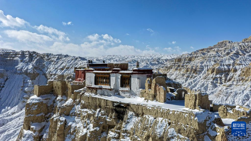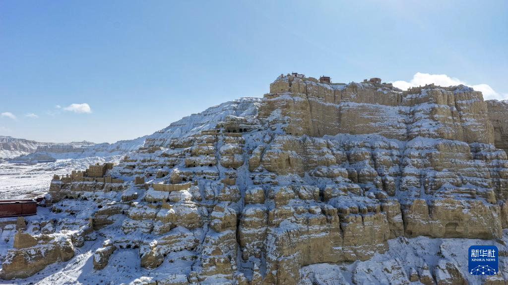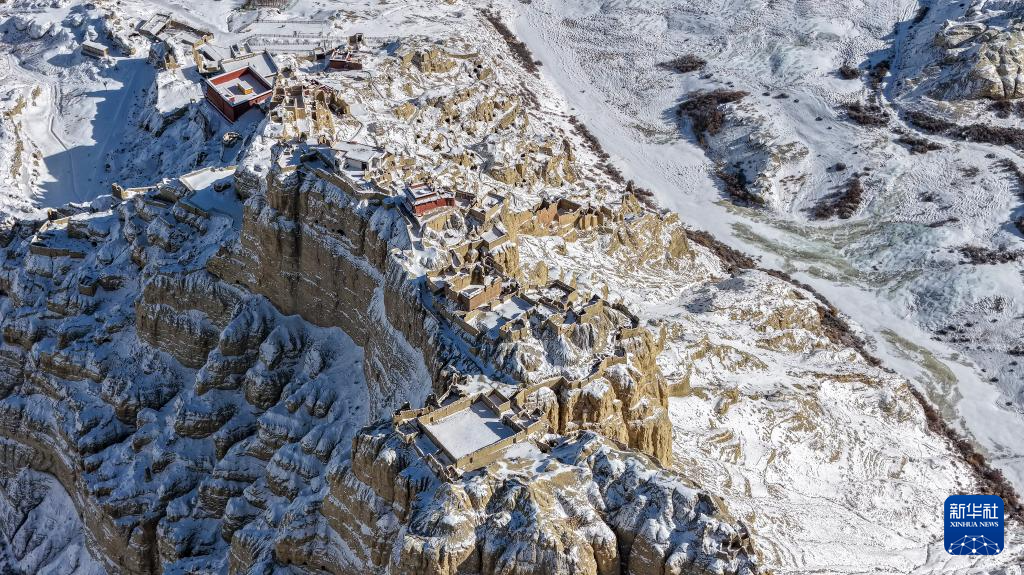 1月24日,西藏阿里地区札达县迎来降雪,全国重点文物保护单位古格王国遗址披上银装,呈现壮美雪景。