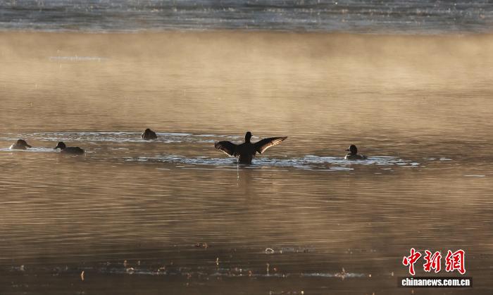 1月23日,5只候鸟在纳帕海嬉戏。 黄兴鸿 摄