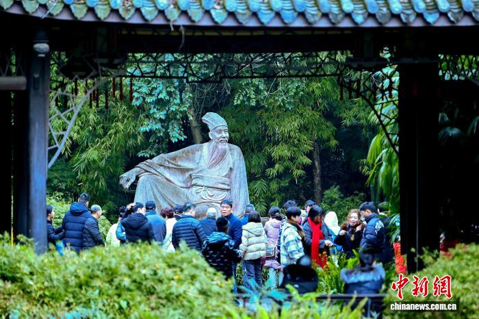 2025年2月2日,农历正月初五,四川省眉山市东坡区三苏祠博物馆内游人如织。 中新网记者 刘忠俊 摄