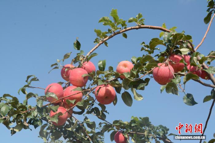 色泽鲜红、脆甜味美的宁粹苹果挂满枝头。(资料图)侯耀强摄