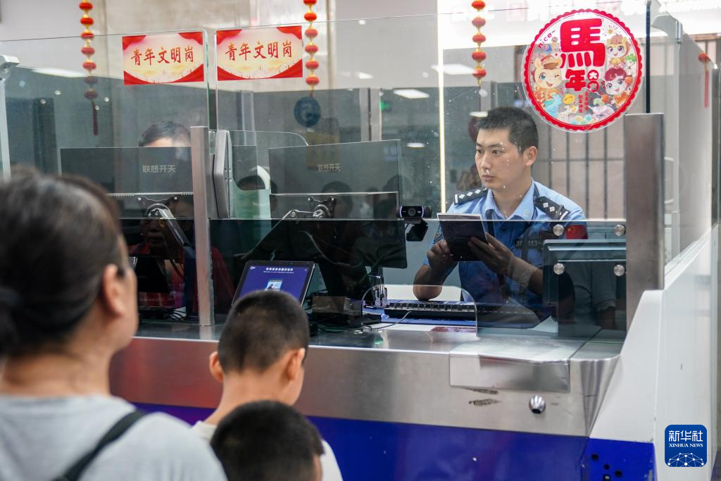 2月26日,河口边检站执勤民警为旅客办理边检手续。
