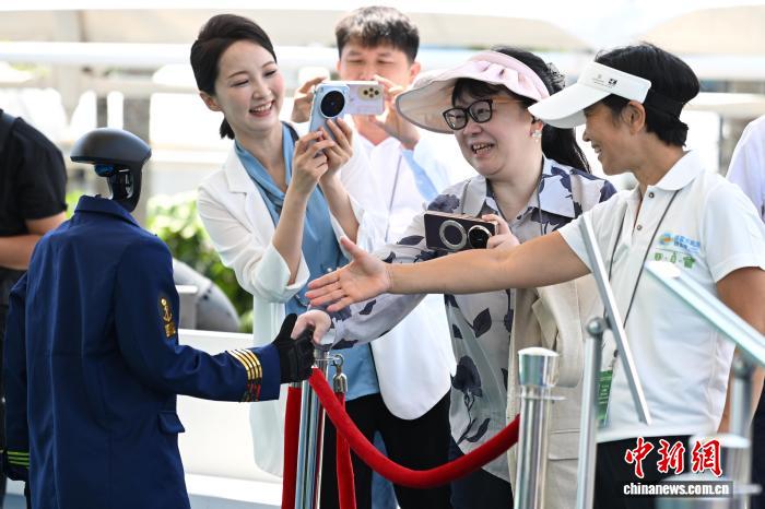 3月24日,博鳌亚洲论坛2026年年会在海南博鳌举行,图为舞蹈表演的机器人在表演后与观众互动。中新社记者 田雨昊 摄