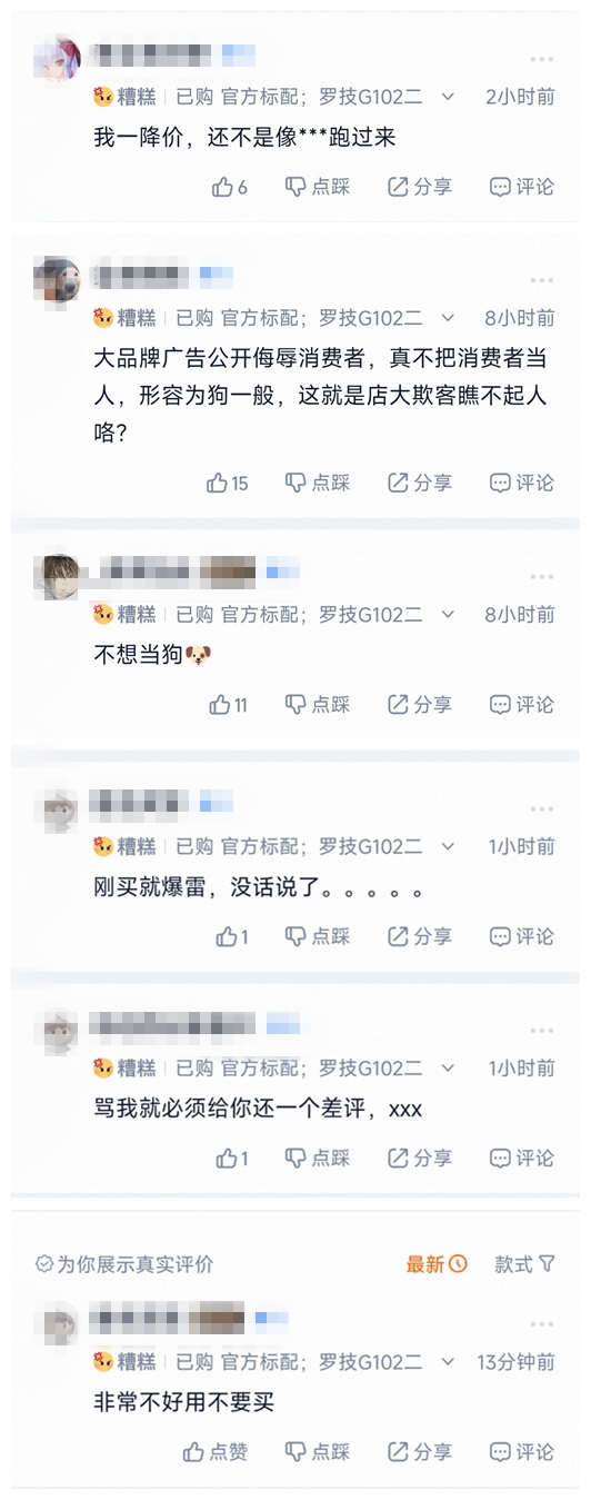 此外,记者注意到,在某电商平台罗技官方店铺评论区中,新增了多条网友差评,主要针对这次的不当言论。