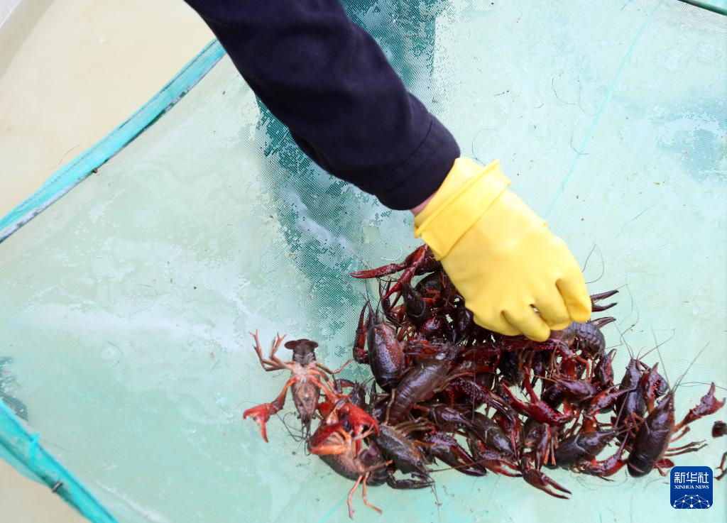这是在江苏省现代农业(盱眙龙虾)全产业链标准化示范基地拍摄的小龙虾(3月27日摄)。