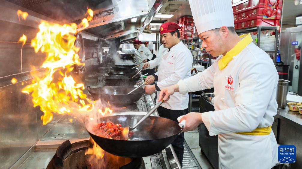 3月19日,厨师在江苏省盱眙县烹饪新鲜上市的小龙虾。