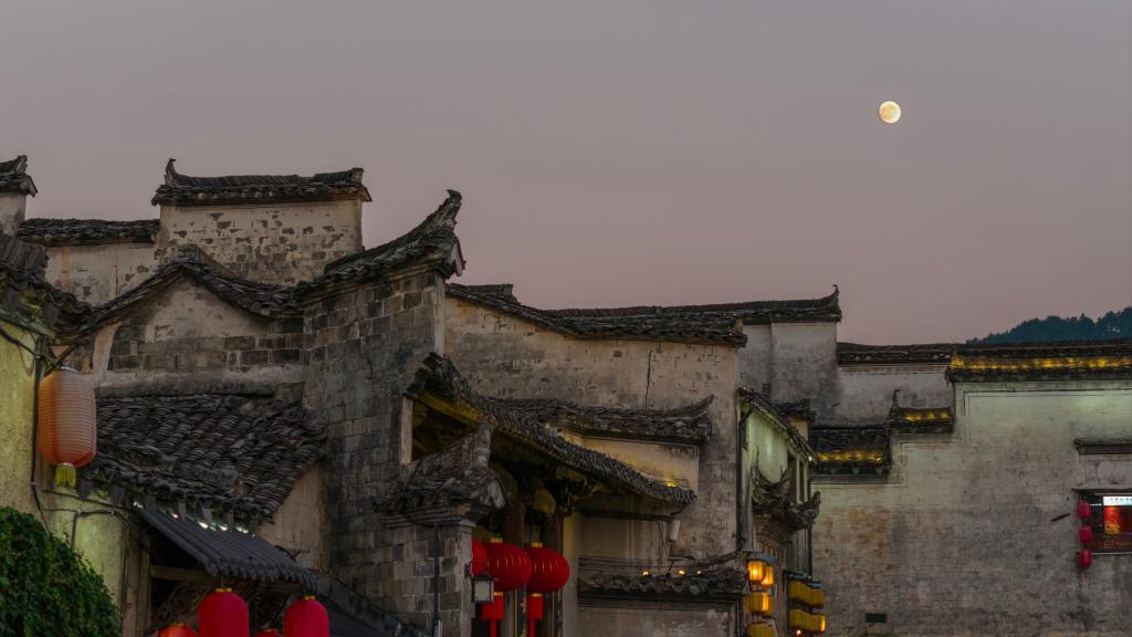 10月5日在安徽省黄山市黟县宏村拍摄的月亮(无人机照片)。新华社发(汪澄摄)