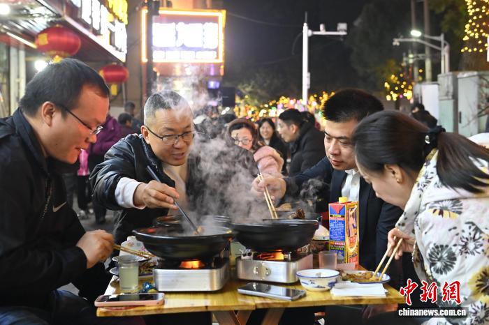 12月1日,游客在安徽省广德市迎春路的饭店品尝炖锅。中新社记者张强 摄