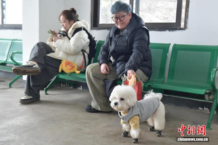 2月9日,安徽省池州市青阳县九子岩风景区,游客带宠物正在等候索道。中新社记者 储玮玮 摄